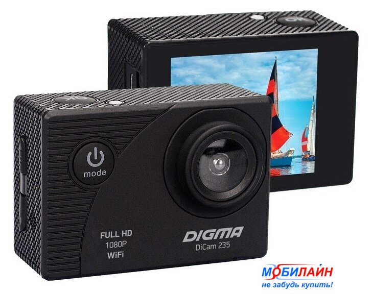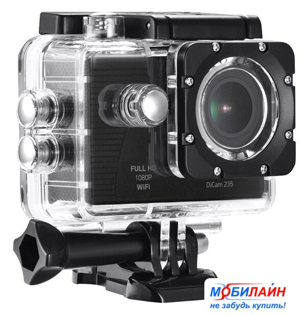 Комплект поставки | - Экшн-камера DiCam 235- Водонепроницаемый бокс- Основное крепление- Крепление на руль велосипеда- Крепление на шлем- Адаптер-переходник- Адаптер на резьбу- Рамка- Повязка-бандаж- Батарея- USB-кабель- Руководство пользователя |