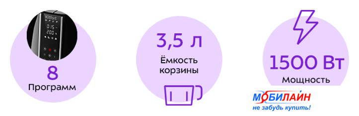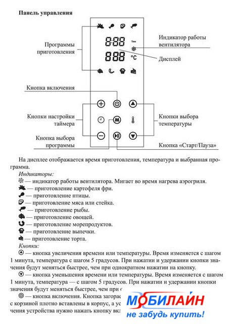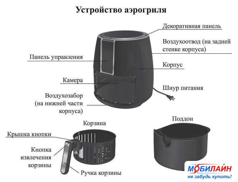 Комплект поставки | - аэрогриль;- корзина с ручкой;- поддон. |