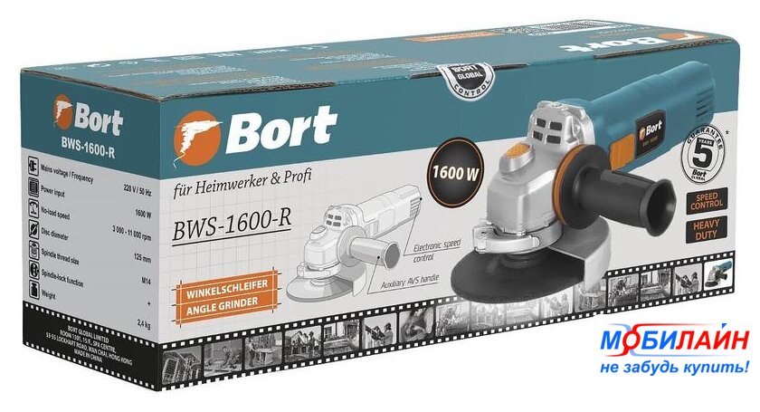 диаметр диска: 125 мм, 1200 Вт, 11000 об/мин холостого хода, питание: сеть, 2.4 кг