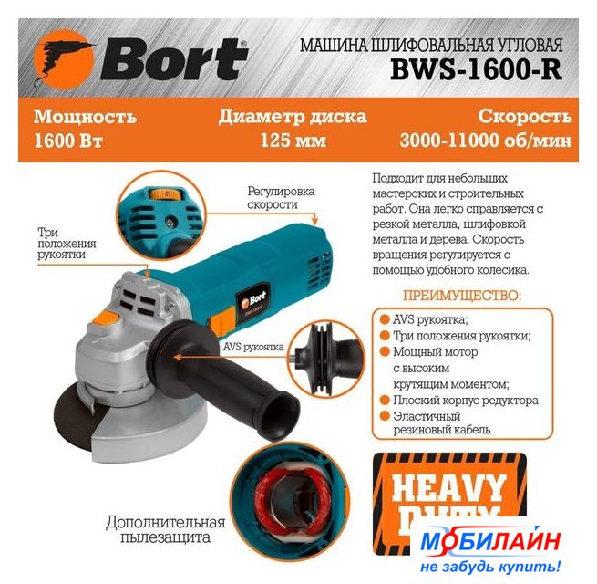 диаметр диска: 125 мм, 700 Вт, 0–10000 об/мин холостого хода, 1.9 кг