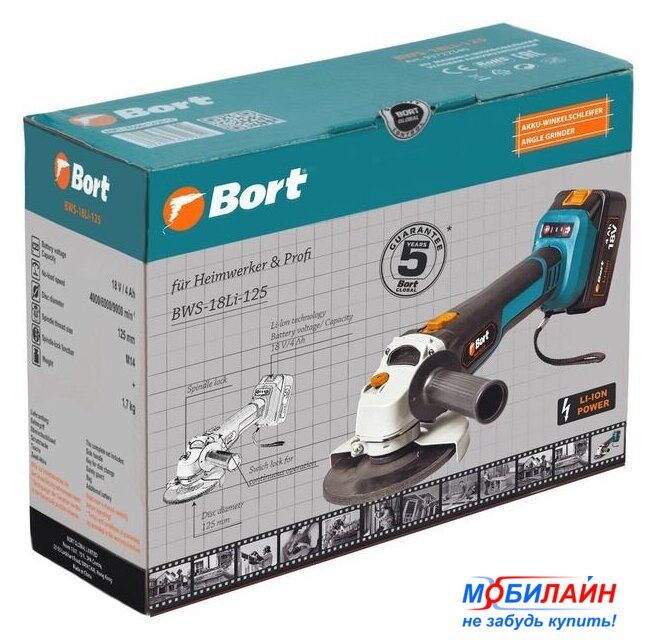 диаметр шлифкруга: 180 мм, 1300 Вт, 8500 об/мин холостого хода, 3.6 кг