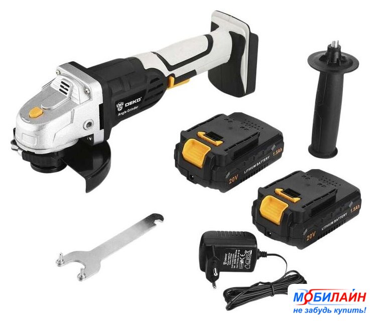 Комплект поставки | - Углошлифовальная машина - 1 шт.- Вспомогательная ручка - 1 шт.- Ключ - 1 шт.- Аккумулятор 1,5 Ач - 2 шт.- Зарядное устройство - 1 шт.- Инструкция- Коробка |