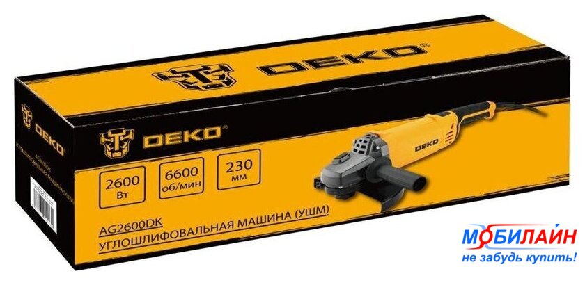 диаметр диска: 230 мм, 2600 Вт, 8000 об/мин холостого хода, питание: сеть, 6.6 кг