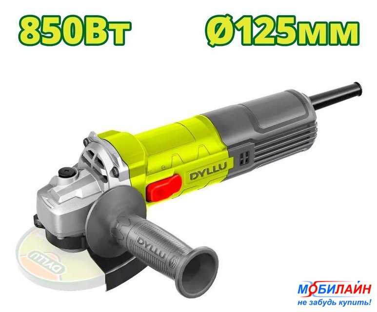 диаметр шлифкруга: 125 мм, 850 Вт, 11000 об/мин холостого хода, 1.6 кг