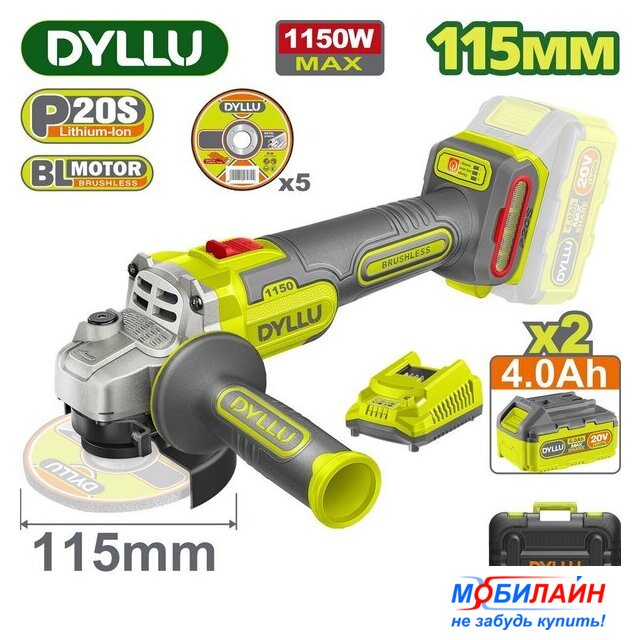 Комплект поставки | - Угловая шлифмашина - 1 шт.- Боковая рукоятка - 1 шт.- Аккумулятор DTLBP540 4,0 Ач - 2 шт.- Зарядное устройство DTFCP518 - 1 шт.- Отрезной диск - 5 шт.- Инструкция- Кейс |
