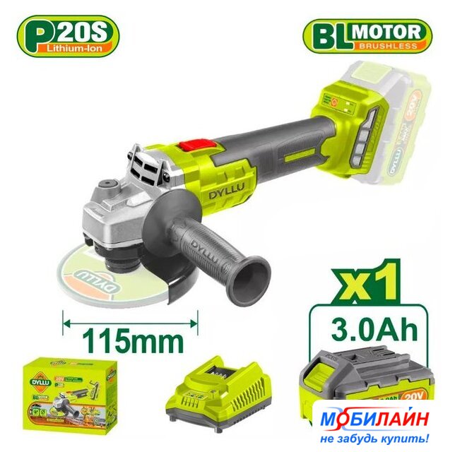 Комплект поставки | - Угловая шлифмашина - 1 шт.- Боковая рукоятка - 1 шт.- Фланцевый ключ - 1 шт.- Аккумулятор DTLBP530 3,0 Ач - 1 шт.- Зарядное устройство DTFCP518 - 1 шт.- Отрезной диск - 10 шт.- Коробка |