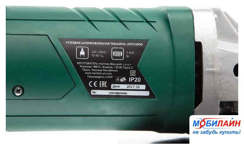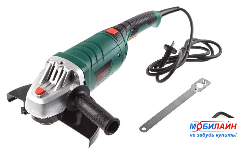 диаметр шлифкруга: 230 мм, 2200 Вт, 6500 об/мин холостого хода, 5.4 кг