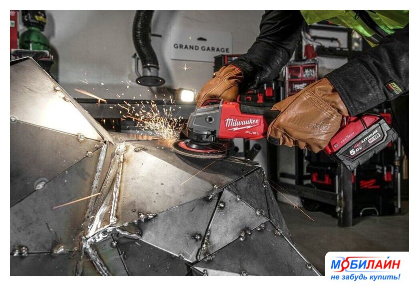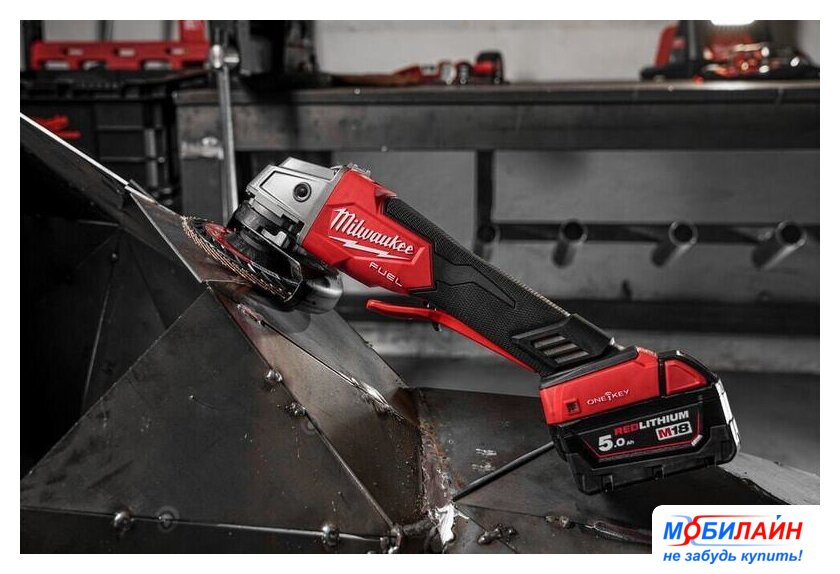диаметр шлифкруга: 125 мм, 8500 об/мин холостого хода, без АКБ, 2.3 кг