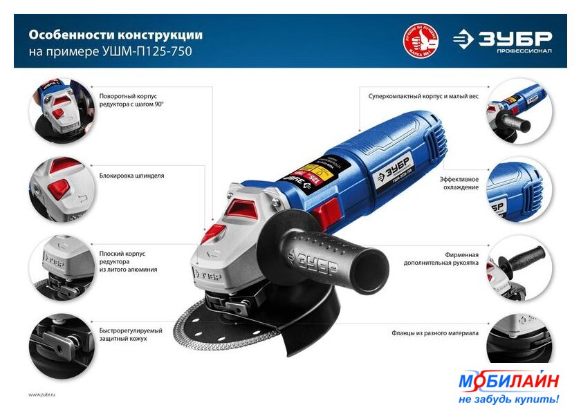 диаметр диска: 125 мм, 760 Вт, 11000 об/мин холостого хода, питание: сеть, 1.65 кг
