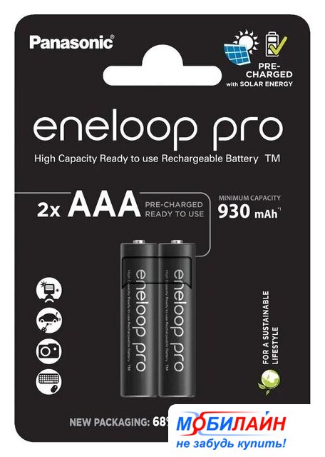 аккумулятор, 2 шт., типоразмер AAA, электролит щелочной, NiMH, ресурс 3000 циклов