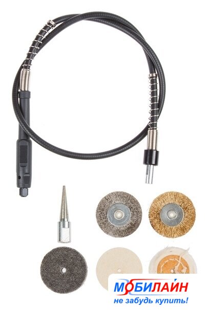 Комплект поставки | Гибкий вал - 1 шт. Полировальный круг войлочный - 1 шт. Полировальный круг хлопковый - 1 шт. Полировальный круг нейлоновый - 1 шт. Щетка из стальной проволоки - 1 шт. Щетка из латунной проволоки - 1 шт. Сужающаяся шарошка - 1 шт. Инструкция по эксплуатации - 1 шт. |