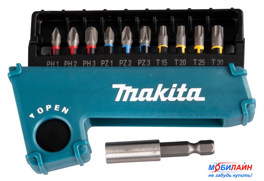 Комплектация | PH1, PH2, PH3, PZ1, PZ2, PZ3, T15, T20, T25, T30, магнитный держатель 50 мм. |
