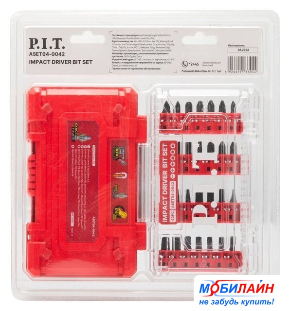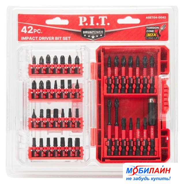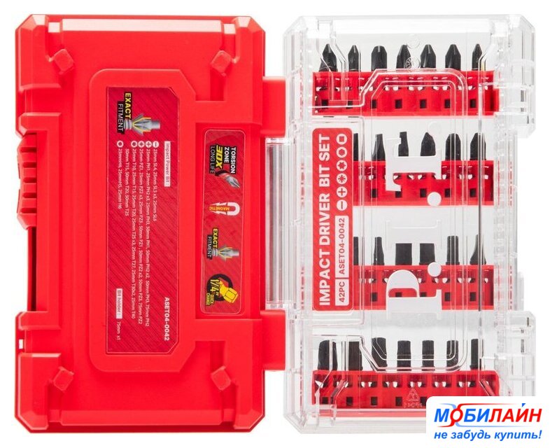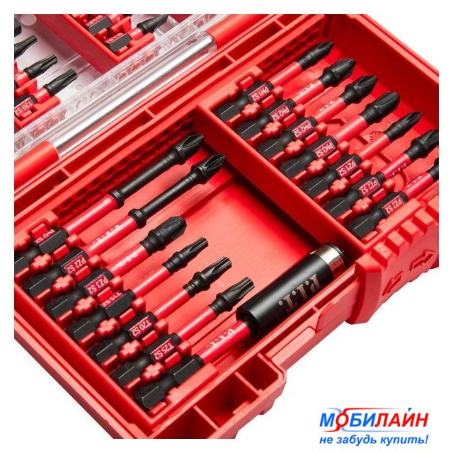 Комплектация | Биты ударные 25 мм (28 шт.), биты ударные 50 мм (11 шт.), биты ударные 75 мм (2 шт.), держатель бит, кейс |