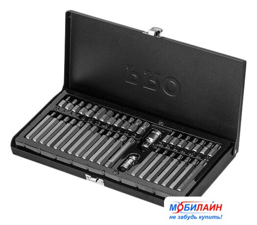 Комплектация | - Насадка HEX 30мм - 7шт- Насадка HEX 75мм - 7шт- Насадка TORX 30мм - 7шт- Насадка TORX 75мм - 7шт- Насадка SPLINE 30мм - 5шт- Насадка SPLINE 75мм - 5шт- Держатель для бит 3/8" x10мм HEX- Держатель для бит 1/2" x10мм HEX- Металлический кейс. |