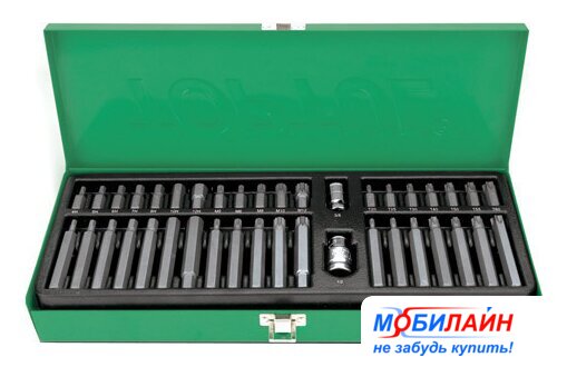 56 шт, хвостовик шестигранный, рабочий размер биты: H4, H5, PH1, PH2, PH3, PZ1, PZ2, PZ3, SL0.6, SL0.8, SL1.2, TX10, TX15, TX20, TX25, TX30, TX40