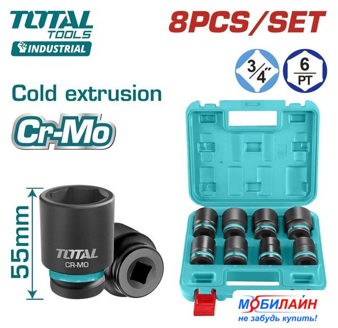 Комплектация | - Торцевая головка 3/4'' (26, 27, 29, 30, 32, 35, 36, 38 мм) - 8 шт.- Пластиковый кейс - 1 шт. |