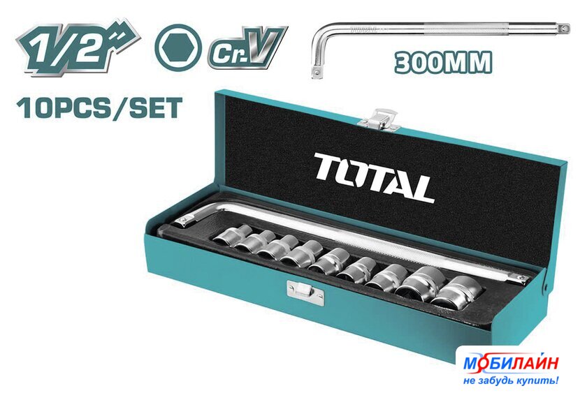 Комплектация | - Головки: 10мм, 12мм, 13мм, 14мм, 17мм, 19мм, 21мм, 22мм, 24мм;- Вороток 300мм;- Кейс. |