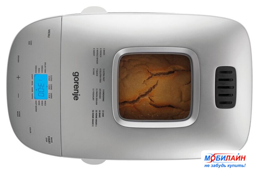 750 Вт, вес выпечки: 1000 г, регулировка веса выпечки, 25 программ выпечки, выбор цвета корочки, замес теста