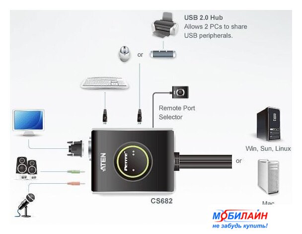 Длина кабеля | 1.2 м (2х KVM; 1.8 м - переключатель удаленного выбора) |