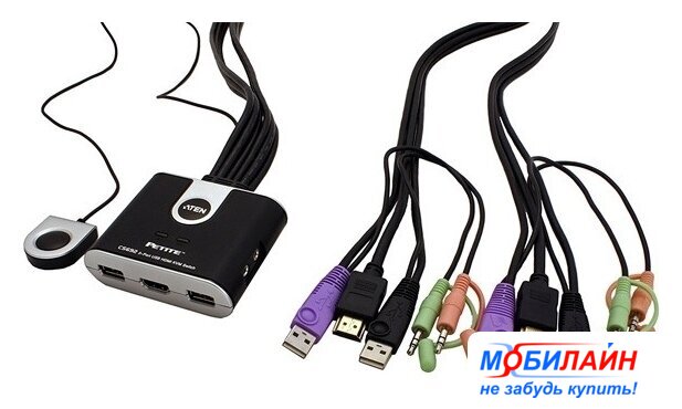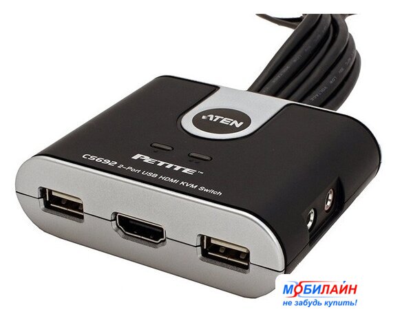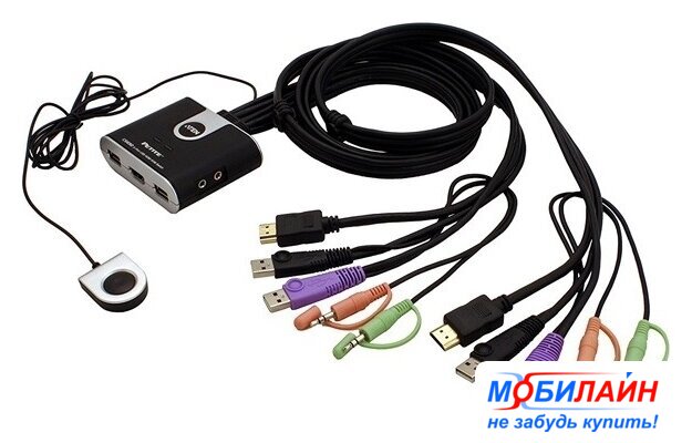 KVM переключатель USB 2.0 Type-A/HDMI/3.5 мм jack, черный, длина 1.2 м