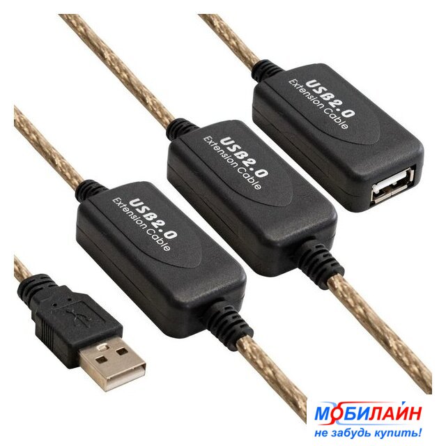 кабель/удлинитель USB 2.0 Type-A, серый, длина 15 м