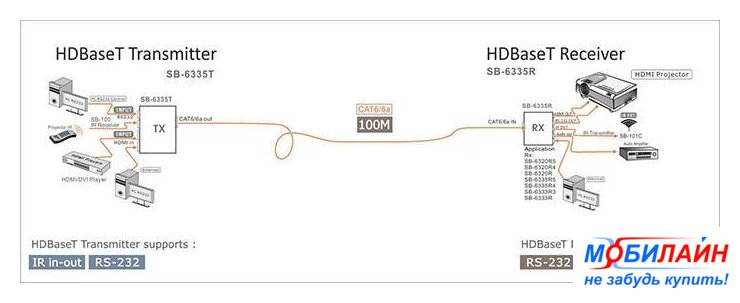 удлинитель по витой паре HDMI/COM (RS-232)/DC-jack/RJ45, черный