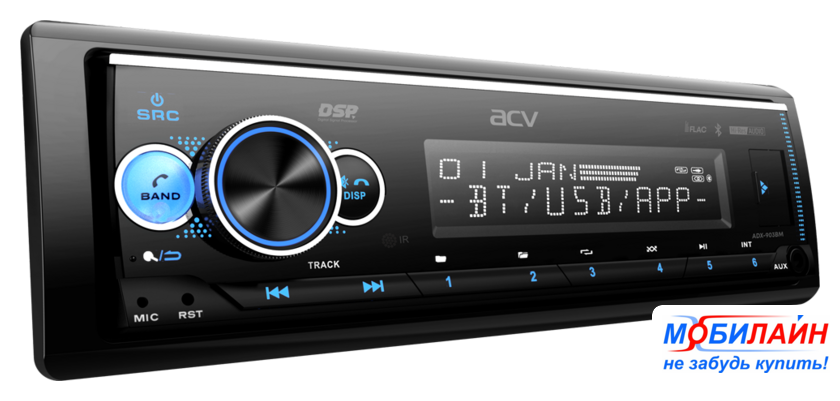 1DIN, USB-проигрыватель, USB, Bluetooth, усилитель 8x65 Вт, экран монохромный, пульт