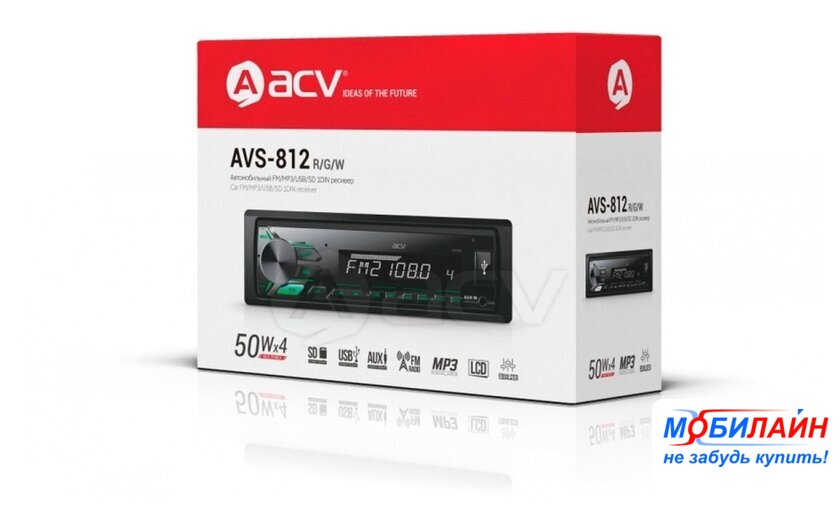 1DIN, USB-проигрыватель, USB, карты памяти, усилитель 4x50 Вт, экран монохромный