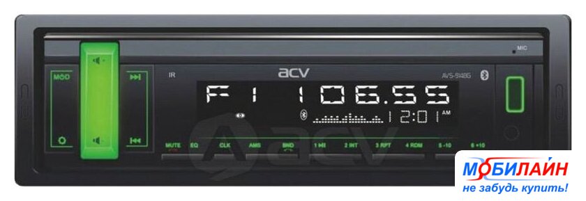 1DIN, USB-проигрыватель, USB, карты памяти, Bluetooth, усилитель 4x50 Вт, экран монохромный