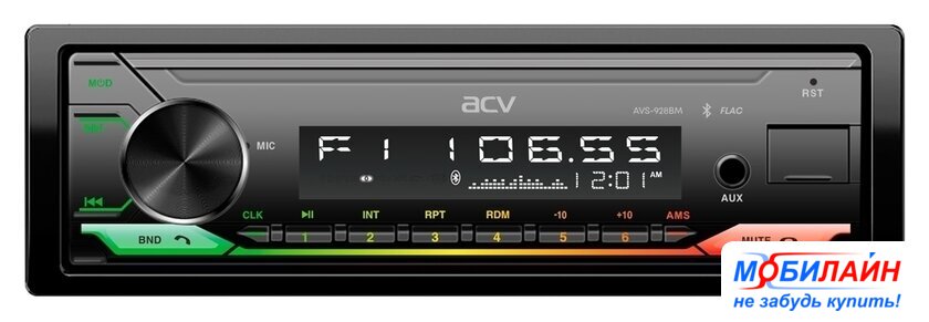 1DIN, USB-проигрыватель, USB, карты памяти, Bluetooth, усилитель 4x55 Вт, экран монохромный, пульт