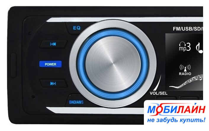 1DIN, USB-проигрыватель, USB, карты памяти, усилитель 4x50 Вт, экран монохромный