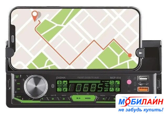 1DIN, USB-проигрыватель, USB, карты памяти, усилитель 4x50 Вт, экран монохромный