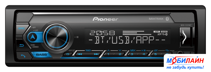 1DIN, USB-проигрыватель, USB, Bluetooth, усилитель 4x55 Вт, экран монохромный