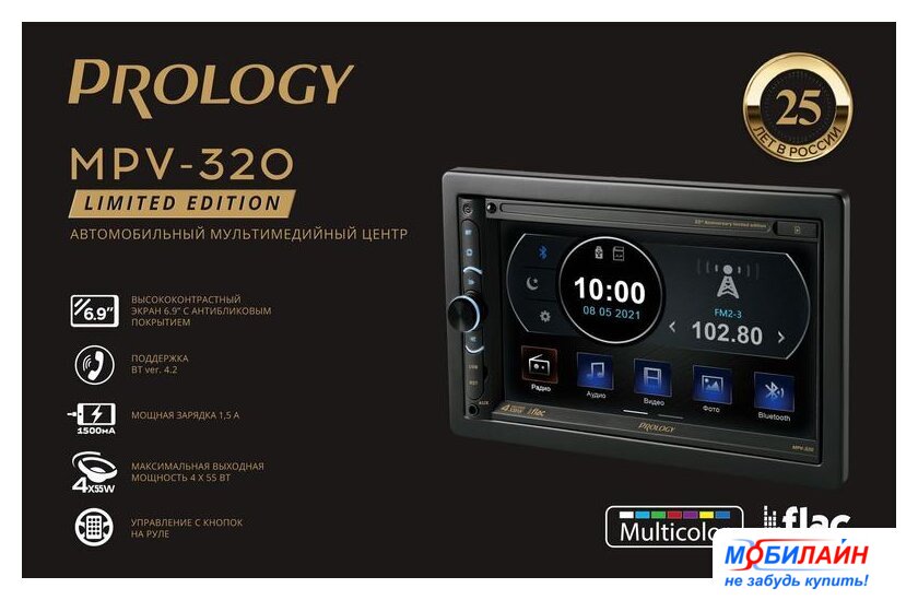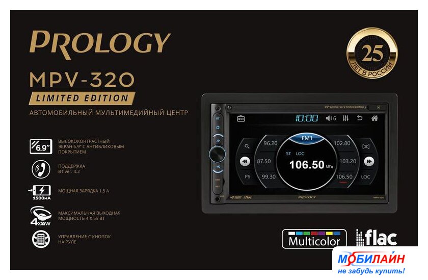 | Комплектация | - Устройство PROLOGY MPV-320- Декоративная рамка- Пульт Дистанционного управления- Соединительные кабели- Краткое руководство пользователя |