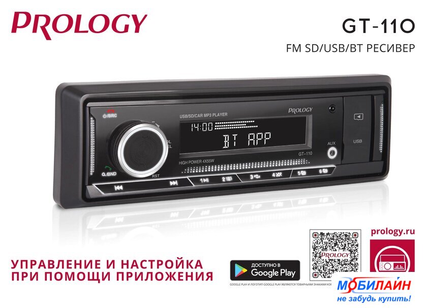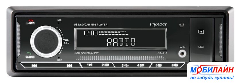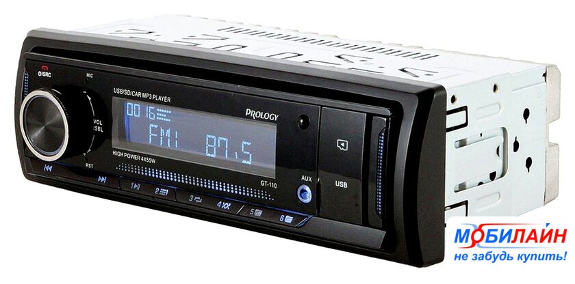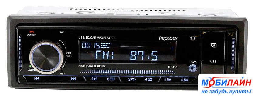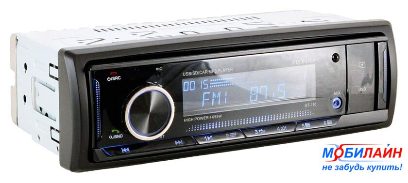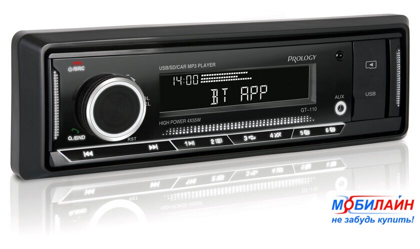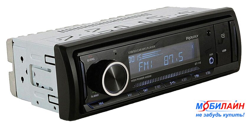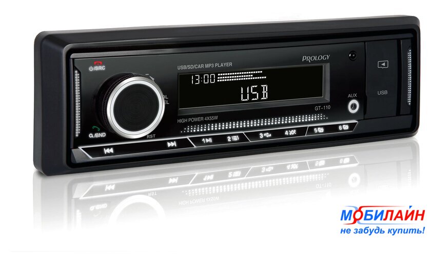 1DIN, USB-проигрыватель, USB, карты памяти, Bluetooth, усилитель 4x50 Вт, экран монохромный