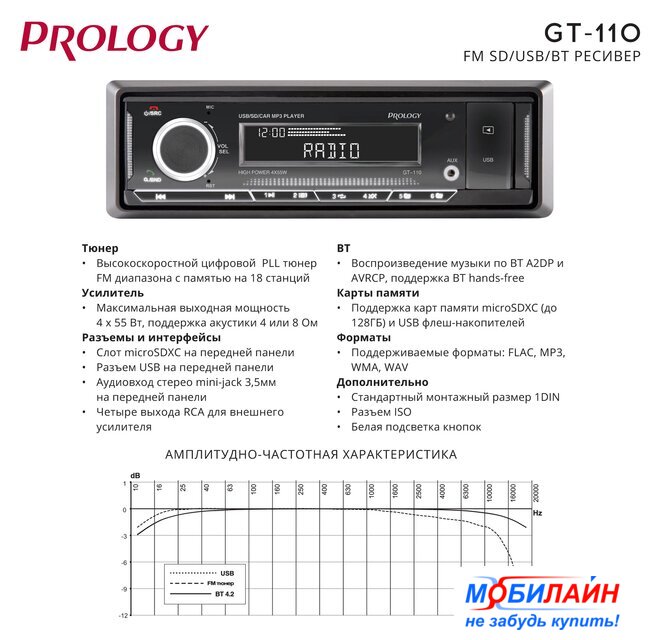| Поддержка форматов | MP3, WMA, WAV, FLAC |