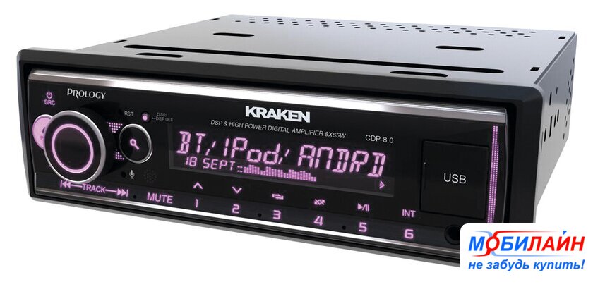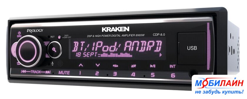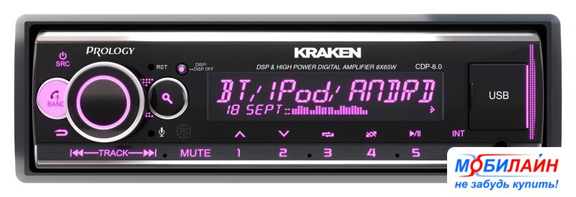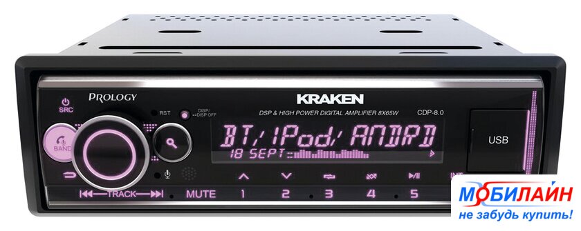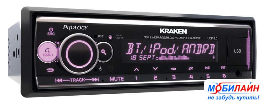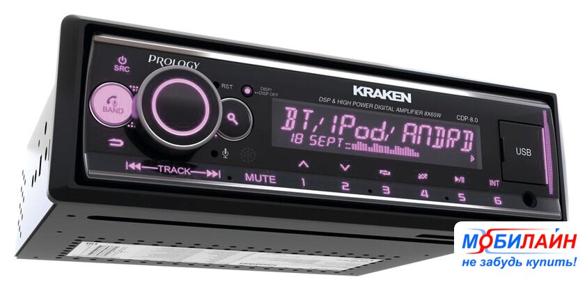 1DIN, USB-проигрыватель, USB, Bluetooth, усилитель 8x65 Вт, экран монохромный, пульт