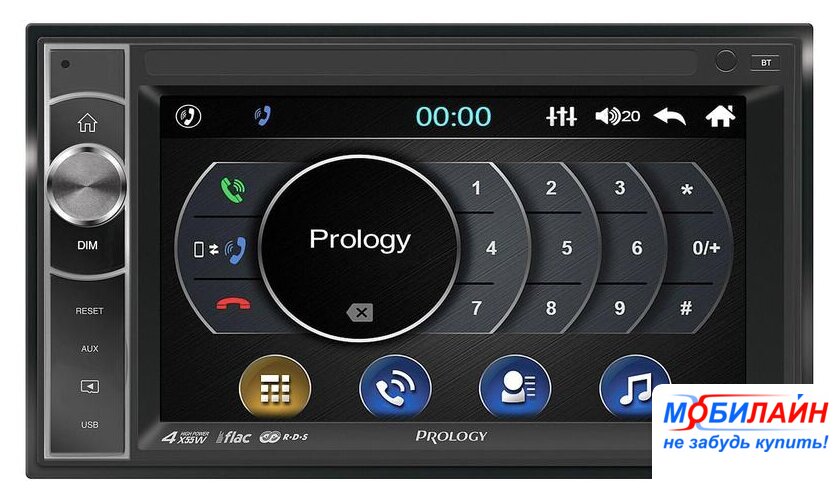 2DIN, USB-проигрыватель, USB, карты памяти, Bluetooth, усилитель 4x55 Вт, экран 7" цветной сенсорный, пульт