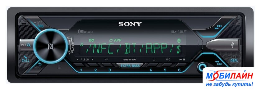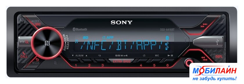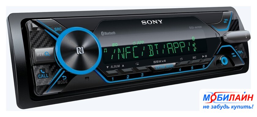 1DIN, USB-проигрыватель, USB, Bluetooth, усилитель 4x50 Вт, экран монохромный, пульт