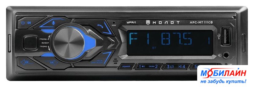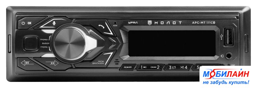 1DIN, USB-проигрыватель, USB, карты памяти, Bluetooth, усилитель 4x50 Вт, экран цветной