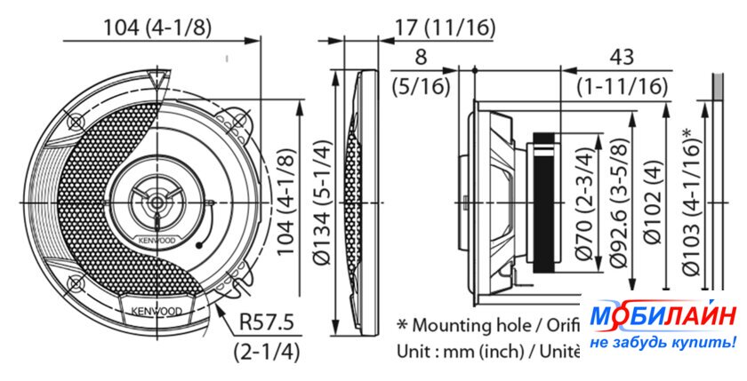 коаксиальная АС, 68–22000 Гц, 91 дБ, 4 Ом