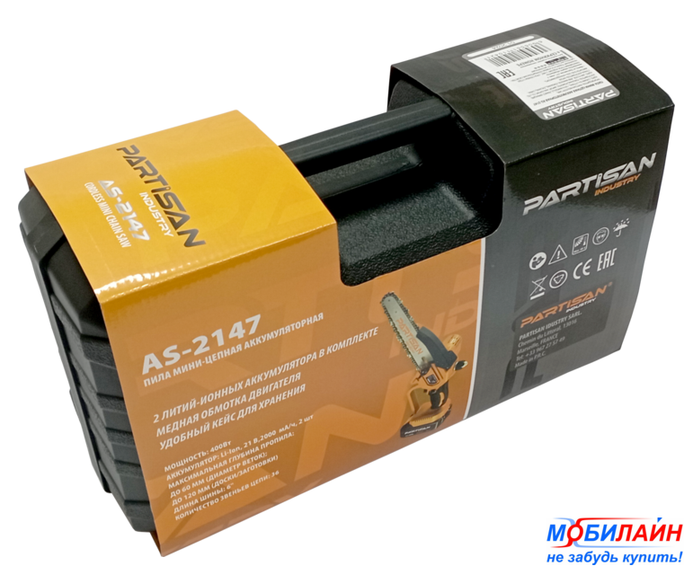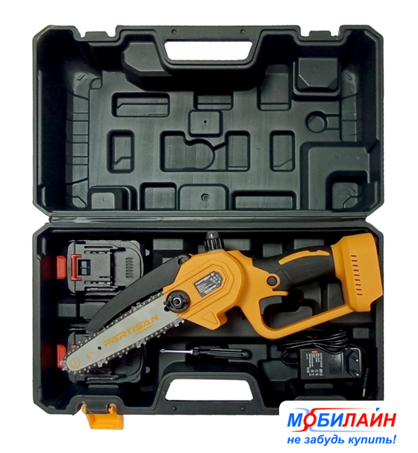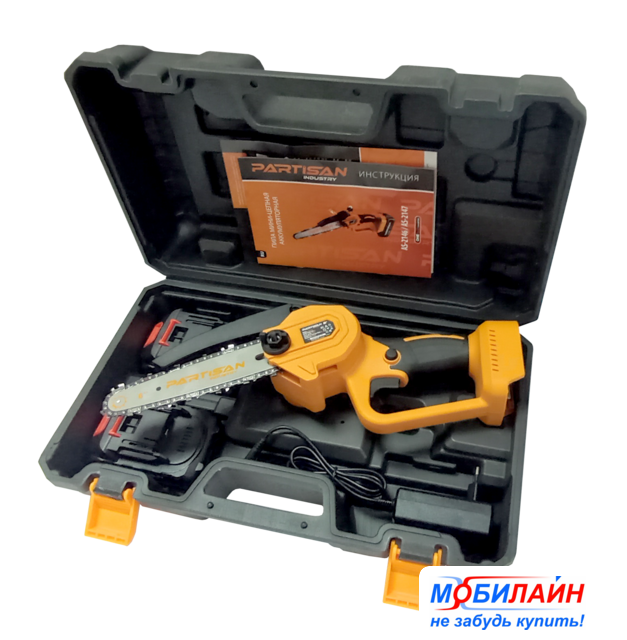 Комплект поставки | - пила - 1шт, - цепь - 1шт; - пильная шина - 1шт, - аккумулятор - 2шт, - зарядное устройство - 1шт, - пластиковый кейс - 1шт, - инструкция - 1шт, - гарантийный талон - 1шт. |