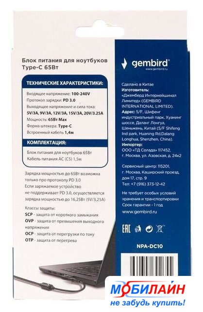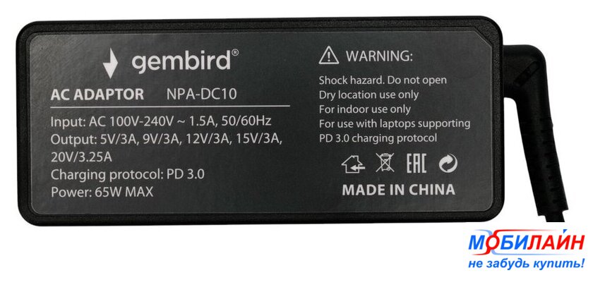 сетевое зарядное для телефонов/для планшетов/для наушников/для ноутбуков/для умных часов и/или браслетов/для видеорегистраторов/навигаторов, разъем подключения отсутствует (нужен кабель), выходная мощность 65 Вт, быстрая зарядка