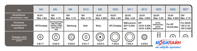 | Совместимые ноутбуки | Acer, Asus, Compaq, Dell, Fujitsu, HP, Lenovo, LG, NEC, Samsung, Sony, Toshiba |