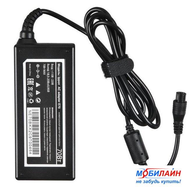 универсальное сетевое зарядное для ноутбуков Asus/Acer/HP/Lenovo/Sony/Dell/Toshiba/Samsung/Fujitsu, 70 Вт, 4.62 А, черный
