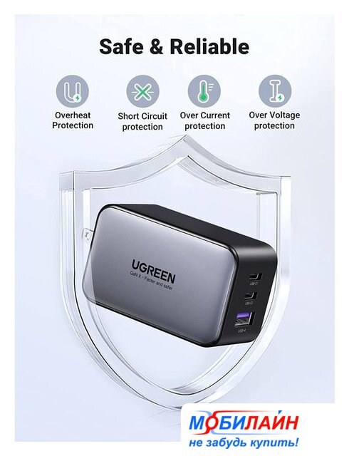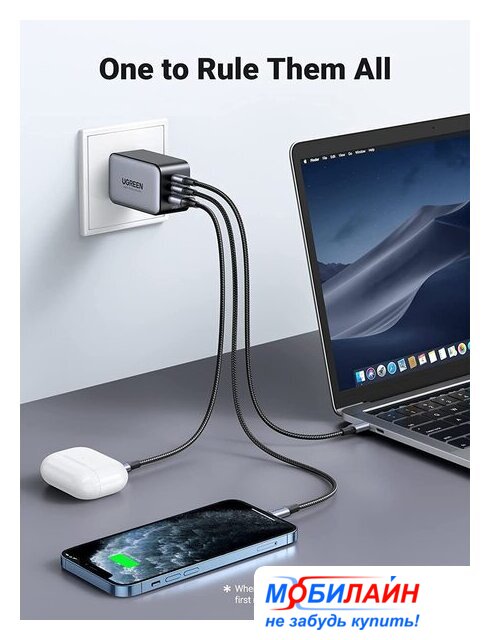 сетевое зарядное для телефонов/для планшетов/для ноутбуков, разъем подключения отсутствует (нужен кабель), выходная мощность 100 Вт, быстрая зарядка