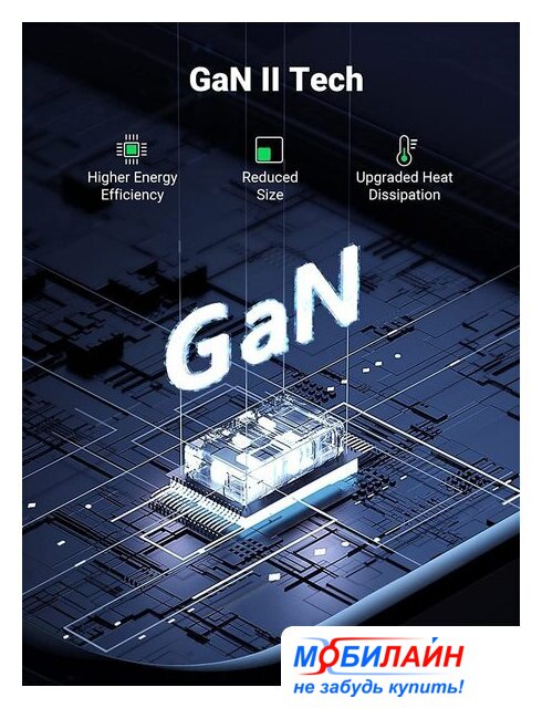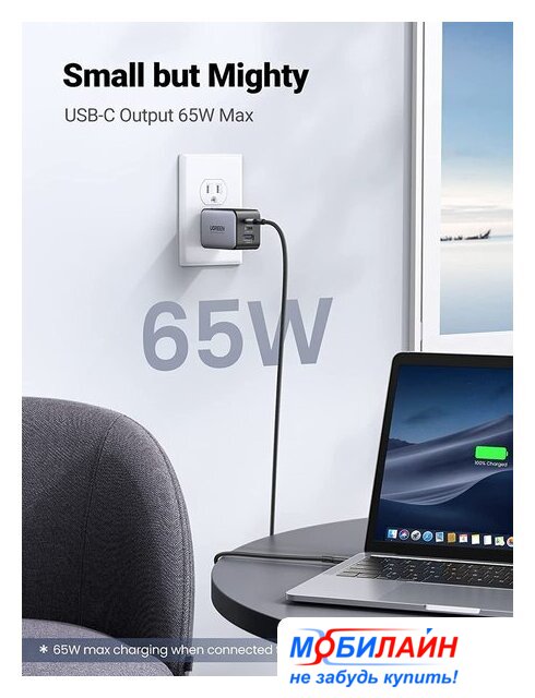 сетевое зарядное для телефонов/для планшетов/для ноутбуков, разъем подключения отсутствует (нужен кабель), выходная мощность 65 Вт, быстрая зарядка