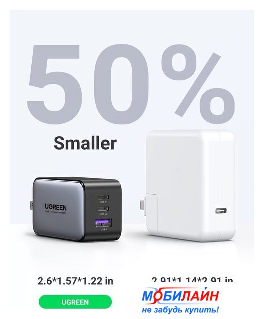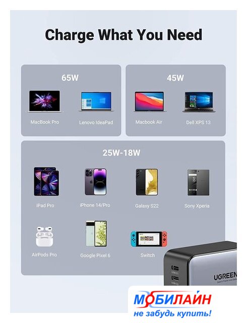 сетевое зарядное для телефонов/для планшетов, разъем подключения отсутствует (нужен кабель), выходная мощность 65 Вт, быстрая зарядка