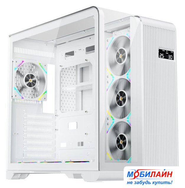 Mini Tower, блок питания отсутствует, для плат micro-ATX/mini-DTX/mini-ITX, 3 вентилятора, 2xUSB 2.0, 1xUSB 3.0, окно: закаленное стекло, цвет корпуса белый