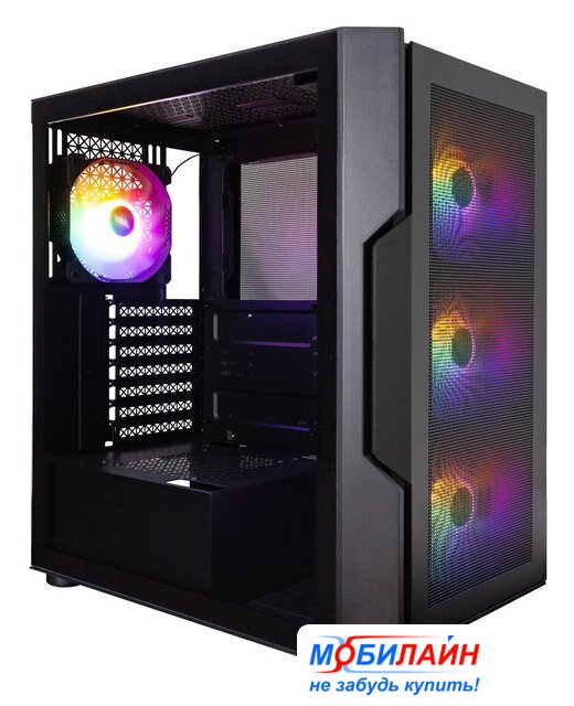 Mid Tower, БП отсутствует, для плат ATX/micro-ATX/mini-ITX, в комплекте 4 вентилятора, окно: закаленное стекло, видеокарта до 355 мм, охлаждение ЦП до 160 мм, пылевые фильтры, 1xUSB 2.0, 2xUSB-A 3.2 5Гбит/с, цвет черный